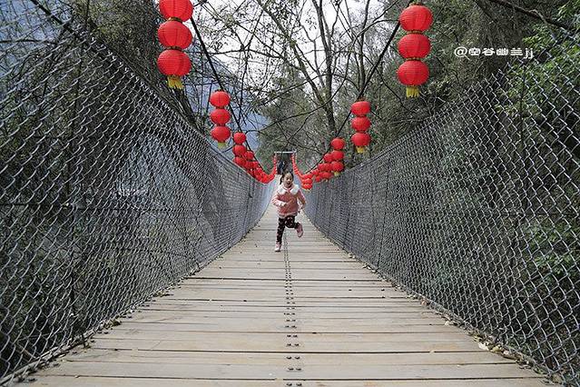 虽然这木索桥走上去摇摇晃晃的,但觉得挺好玩,你看小姑娘多么兴奋的在玩耍。