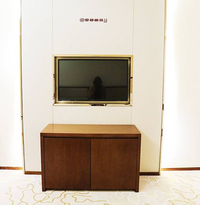 尤其是如厕纸在马桶的右前方,取用非常方便。虽然是个小细节,却给人带来舒适的感觉。不象大多数都是放在马桶后方,必须转身才能取到。电视镶嵌在装饰强内,屋内看起来干净整洁。