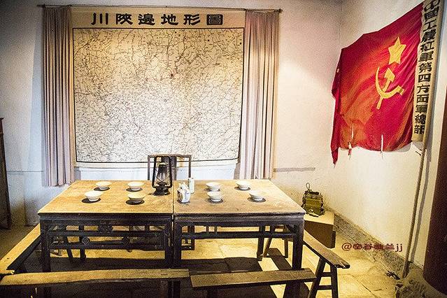 纪念馆的正前方是红军广场,大山上有川陕苏区第一幅石刻标语“争取苏维埃中国”。
