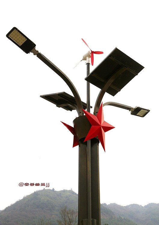通往纪念园的路灯都这么有特色,节能减排的太阳能灯上挂着鲜红的五星。