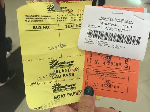 3. 从Kalibo机场出来后,就会有各种巴士公司的人兜售车船票,一般的是200P/人(但有多个岛友反馈200P的这种车比较拥挤,行李堆到车顶,安排客人较乱,建议选择300P southwest公司的车-码头上有卖票的桌子,车宽敞,时间也有保障)。特别提醒,这个200P虽然包含了kalibo-caticlan的车费,以及caticlan-长滩岛的船费,但是不包括50P的税费,下了车还是还是会让你交税钱的,不是欺骗你的哈。