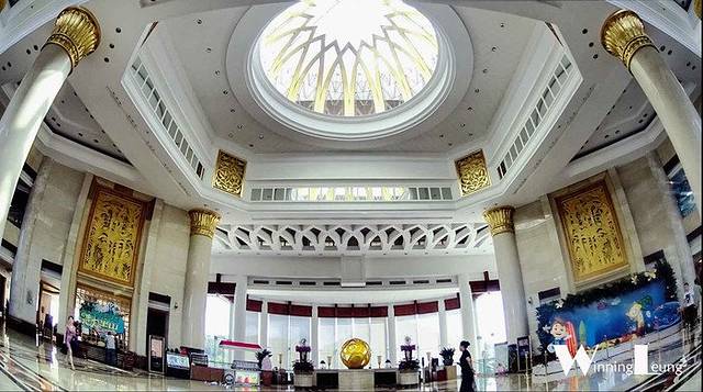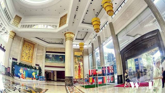 放我下车的位置并不是主大堂,但是也让我一眼就见到了此行的重点行程--环球太太比赛的大背板。配合酒店的镂空雕塑造型,真是相当有气势呢!