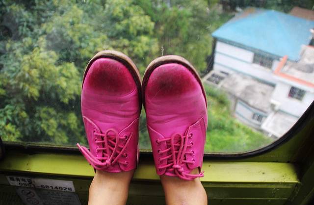 这个索道做得略陡峭,对于有点畏高的我来说,让自己不害怕的方法就是:不断拍照!