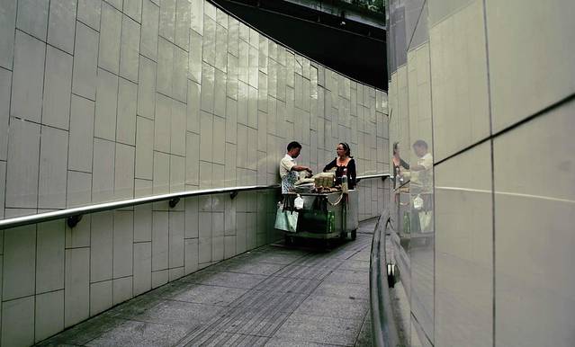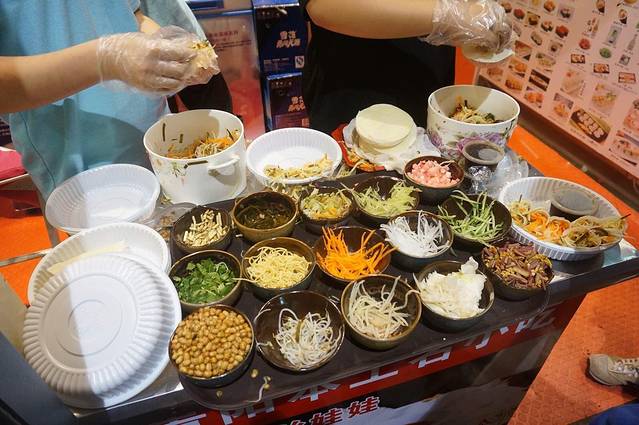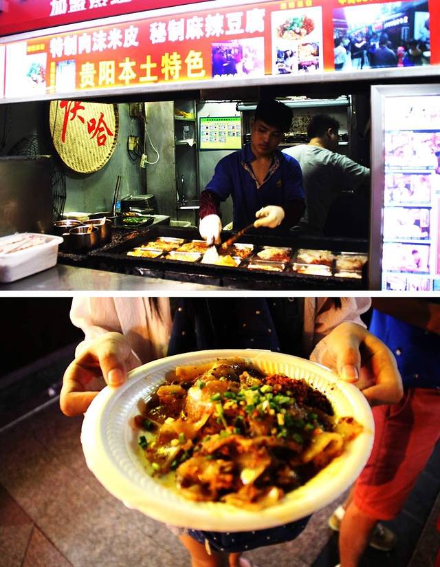 由于交通的堵塞,在贵阳基本是没有设立路面上的人行斑马线的,所以周围都是地下隧道或天桥,而这些隧道和天桥便成了人们开小店买东西的圣地,除了里面的小格子铺外,每条人行隧道的出入口都站着小贩,什么烤土豆啊,臭豆腐啊,冰糖葫芦啊,白薯啊……到处有售。