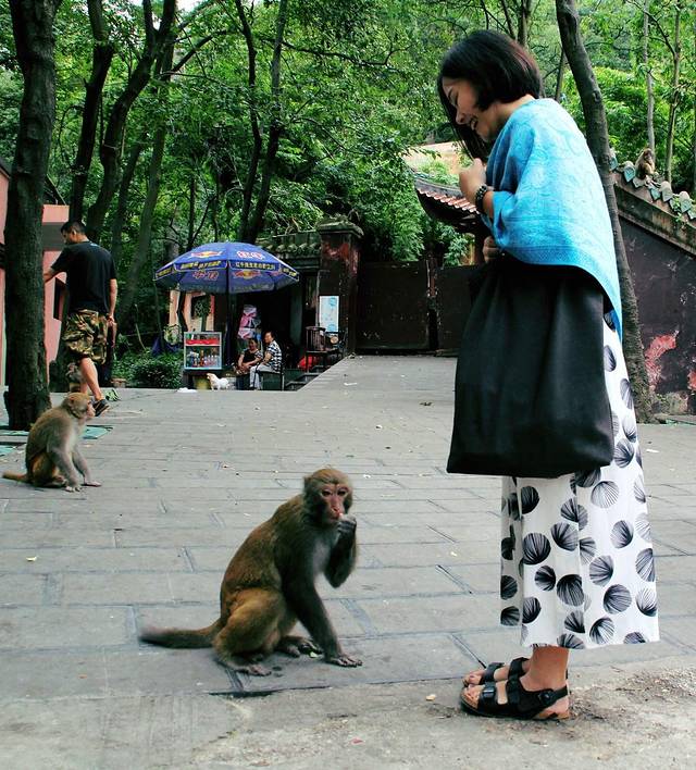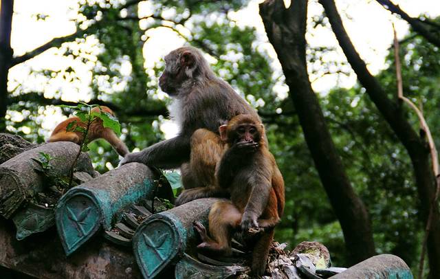在山顶下索道,一路玩下来,看到了好多猴子。