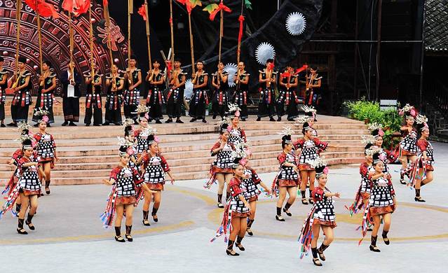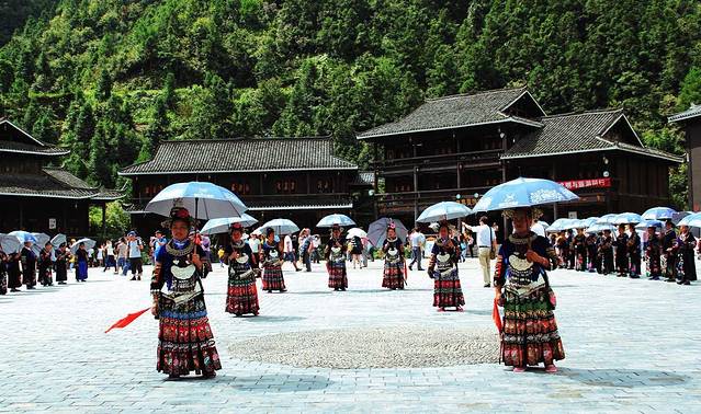 在观景平台下来后,我们去了观看苗族舞蹈表演。