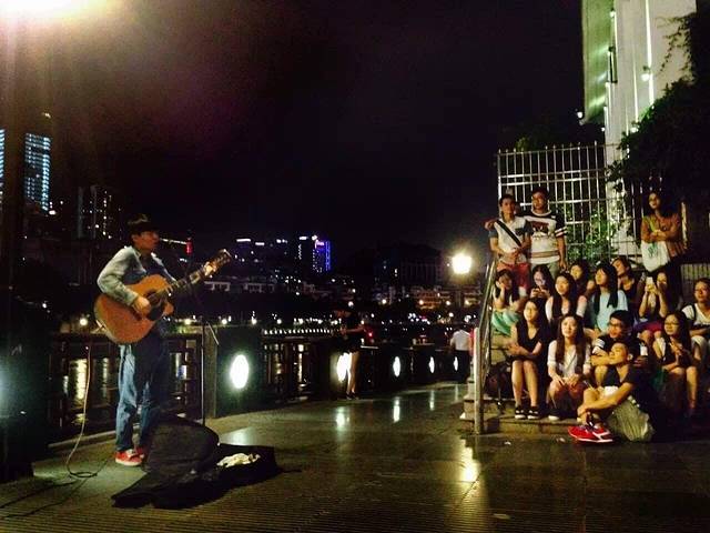 偶遇路边歌手,树莓们成了最捧场的观众。 可以想像,在此情此景中,大家仿佛忘却了来来往往的车流,忘却了四周闪烁着的广告牌,忘却了繁华闹市,只是静静的沉溺在一吉他与一人。