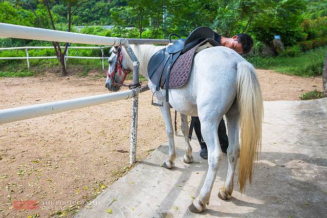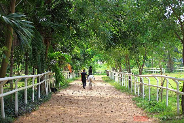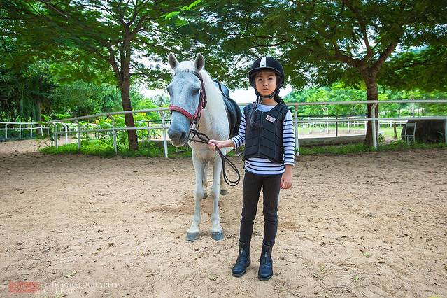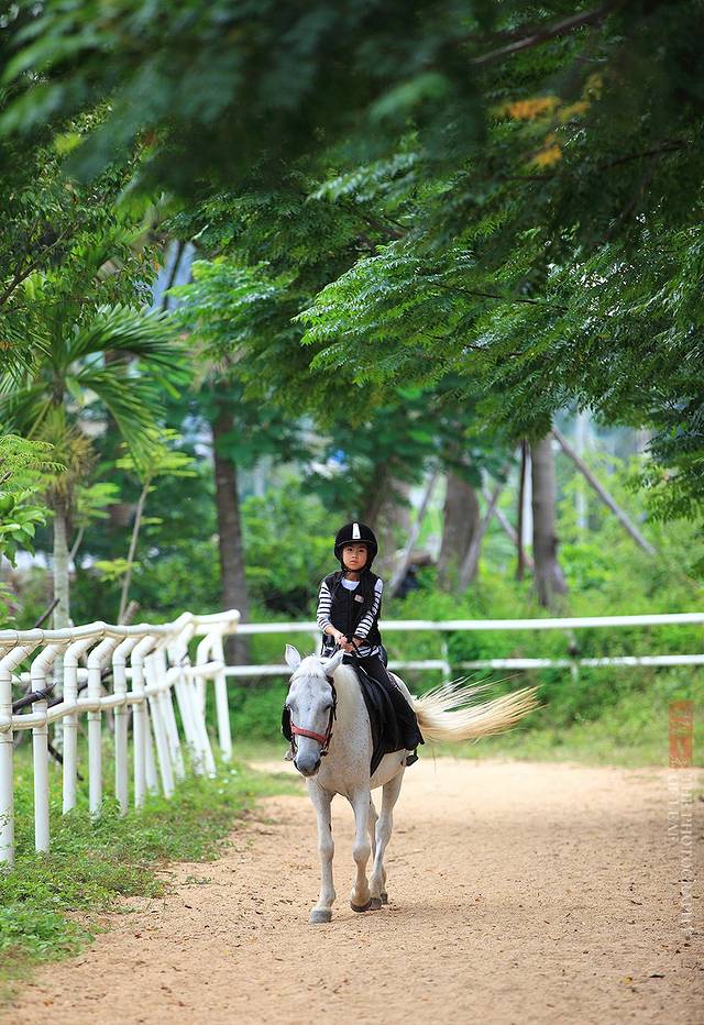 每天玩水湿气重,偶尔也得出来动动筋骨出点汗,大概10分钟的车程我们来到了神马驿站。这是小妞自己选的项目----骑马、射箭。