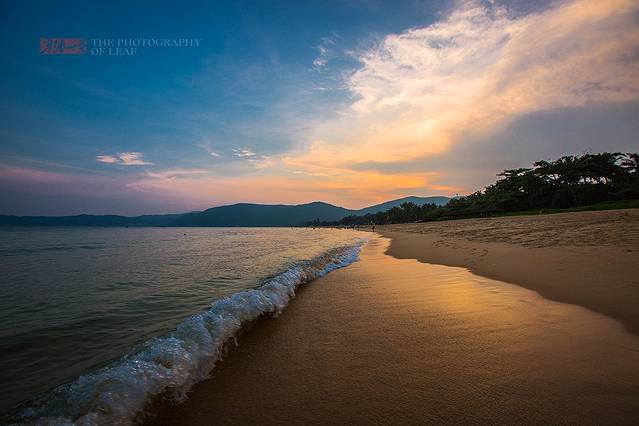 夕阳西下,步入霓湾,碎金闪烁,金沙碧波近在脚下,此时跳跃的海浪声,无比湛蓝的海景和广袤的天色立即掏空您的思绪。