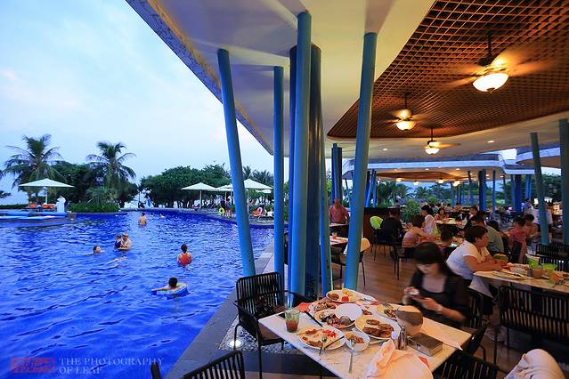 池畔烧烤吧---可加入热闹的水上吧台,或者安静地在池畔躺椅上独享傍晚的宁静,也是与亲友欢聚,分享中西美食的绝佳去处。用餐气氛很休闲。
