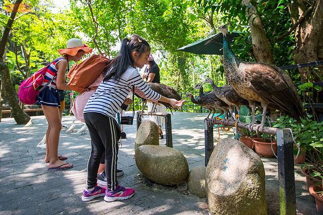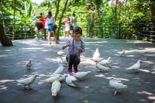 停停走走拍拍,也觉得悠闲。来到一处饲养孔雀和鸽子的地方,这下小妞又迈不开脚步了,天生爱小动物的她,一定要买食料喂鸽子,(一问:一小袋20元,真心有点贵)但是没办法,孩子喜欢。