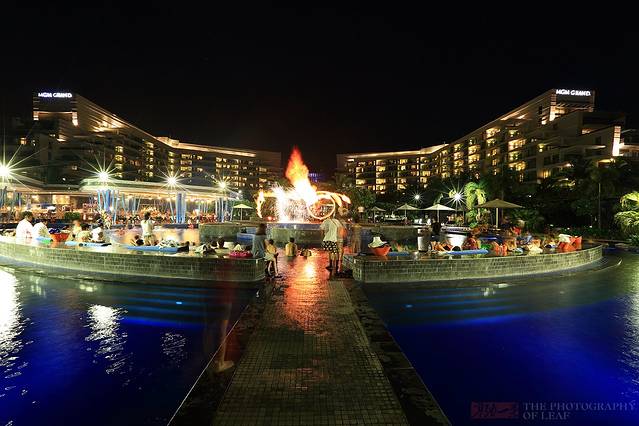 夜幕降临,又该解决一天中非常重要的事情----吃。吃什么呢?小妞在海边玩的不过瘾,一直说不饿还想玩,好不容易从海边叫上来,一看到泳池又跳了进去。冒汗!!可是我们饿了呀!为了折中大家的需求,我们选择在酒店泳池边的池畔自助烧烤解决,听说还有驻店马戏团表演,这听上去非常不错哦。
