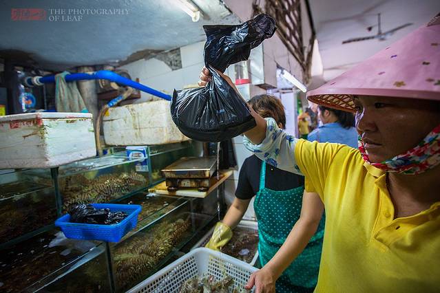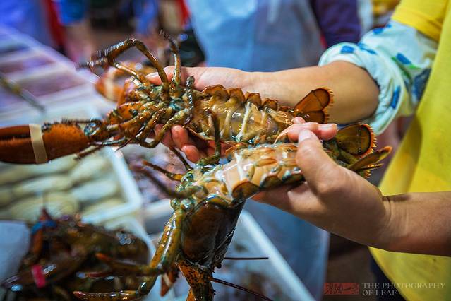 海鲜装进袋子之后,一定要把袋子戳个洞,放完里面的水分,再去称重,不然你就要用买龙虾的钱买水了哦。真是买海鲜套路深啊!
