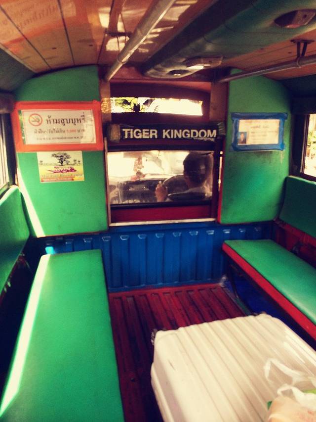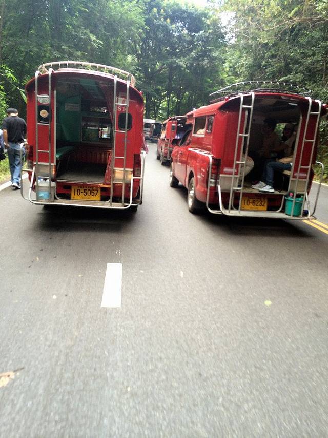 或者是去离walking street 不远的那个十字路口,过了一个庙,就可以看见路边有许多 mini-van. 这两个地方都是去纪念碑的。还有这些个都是等人满就走的,或者提供包车服务的,所以在白天的话都有营业。