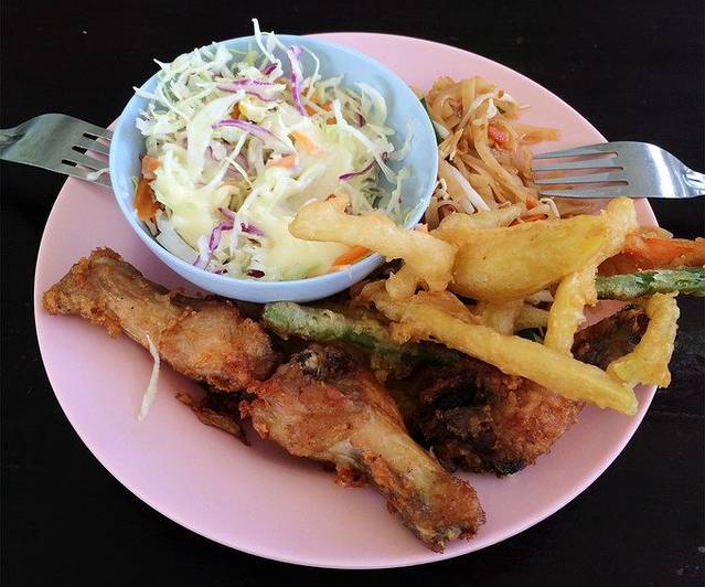 本想着,先回酒店,趁着泳衣还湿着先去酒店的露天无边游泳池玩玩。。。结果实在抵不住肚子只能先去吃饭了出了walking street随便找了一家还算顺眼的店就进去了