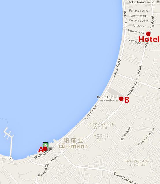 离开酒店5.6公里处有个mini-van可以到,在Pattaya tai 也就是是离bigc不远,有个天桥, 在那个附近有个小岗亭,门口有许多mini-van。
