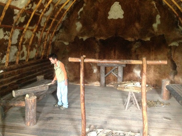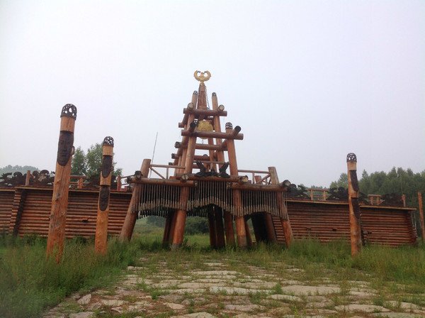 这是部落的大门,全部是用实木榫卯结构建成,非常壮观。