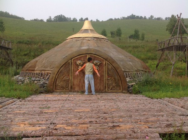 前往恩和的路上,张师傅带我们来到一个还没有开放的景区,叫做蒙古部落,里面几乎没人,其中有三座房子都是用兽皮包起来的,有熊皮、狼皮、牛皮,各种皮,后山上的野花也开得相当漂亮。