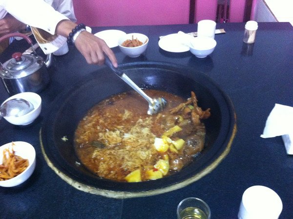 午餐在黑山头子昱餐厅吃的茶叶熏羊肉,晚上在北疆草原蒙古包吃的烤羊排,所以第二天早晨开始消化不良,导致晚上的涮羊肉没敢放开吃。