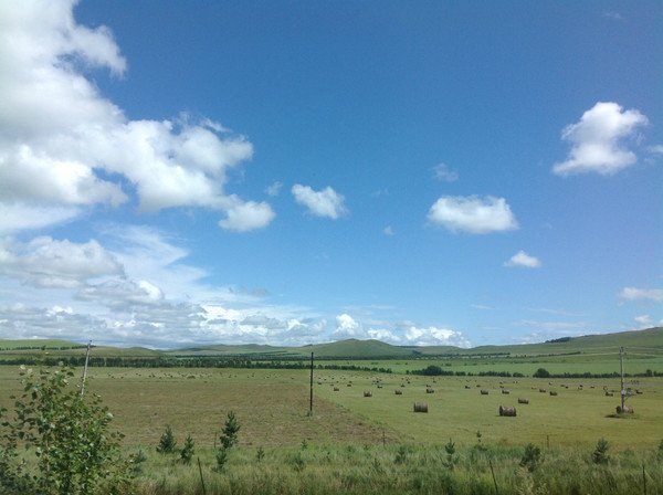 这一天是呼伦贝尔之行正式开始的一天,刚刚见到草原的我们显得尤为激动,张师傅永远在最适合停车的地方停车,让我们拍照,于是才有了这些毫无技术含量但是却美到极致的照片。(因为带着一老一小,所以行李精简,拍照设备就是IPHONE、IPAD,还有婆婆的卡片机)