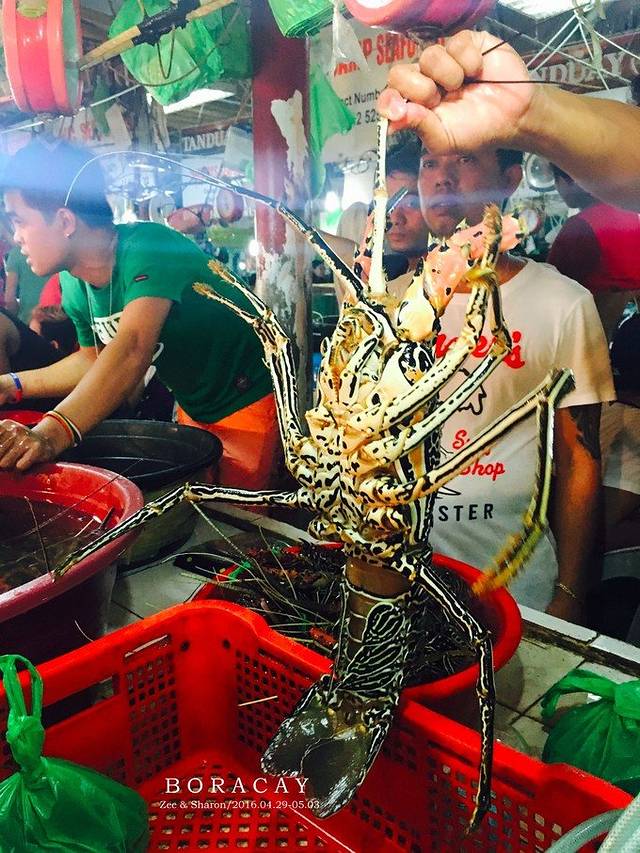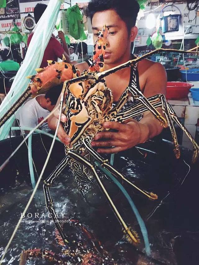 对了,大龙虾是按照斤称的,我们那个其实被缺斤少两了,称有问题,所以大家买的时候要注意称的问题。另外螃蟹和大明虾按“只”算的,如果你们要买,一定看看螃蟹有没有钳子,这点也有点亏。我去之前问了当地的小黑(Jerry),他说最好吃的就是青龙,然后价格差不多在2000比索/公斤,照这个价格杀价,不至于太亏。