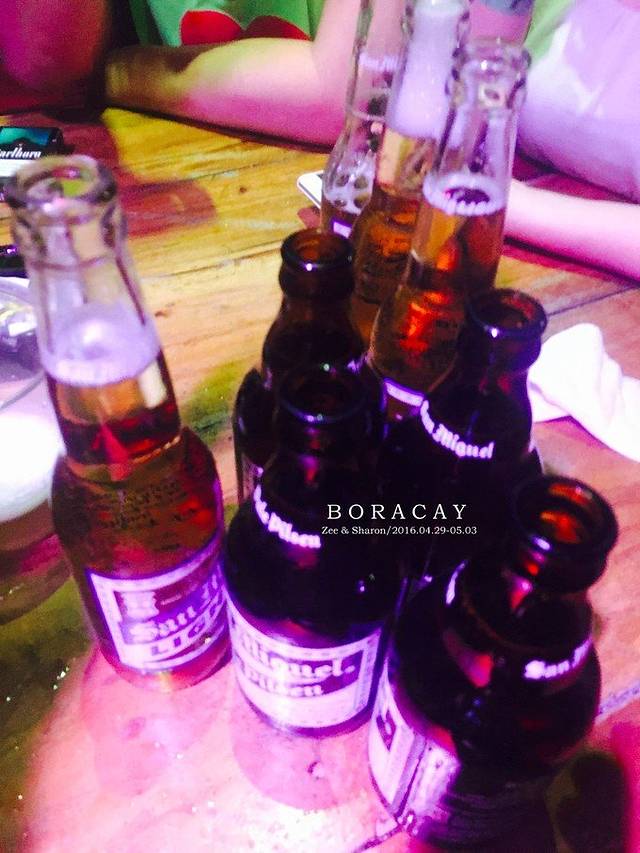 说实话,长滩岛酒吧的啤酒比国内的便宜一些,算下来也就20人民币不到一瓶,如果九点之前好像还可以买一送一,有一些酒吧是有优惠活动的。