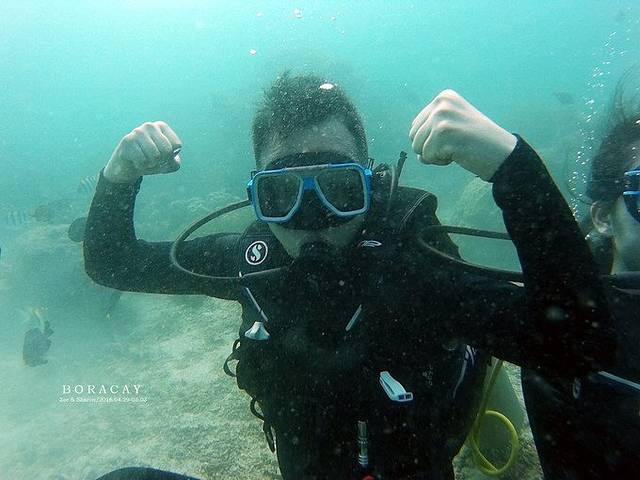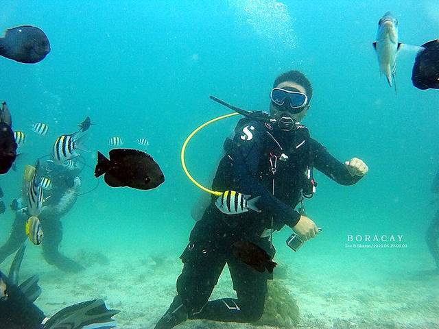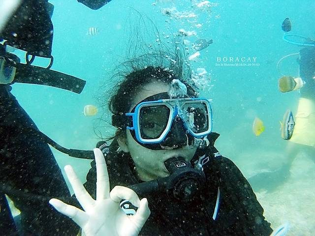 本来去年从毛里求斯回来以后,就非常想去考潜水证,但迫于我水性不好(会游泳不会换气)始终无法摆脱对水的恐惧,而且这次去长滩岛游玩时间有限,我老公最终也只能妥协,只挑选了体验潜水,初步认识长滩岛的海底。我建议去长滩的小伙伴,最好每人都去体验一下深潜,真的是太美了好吗!!