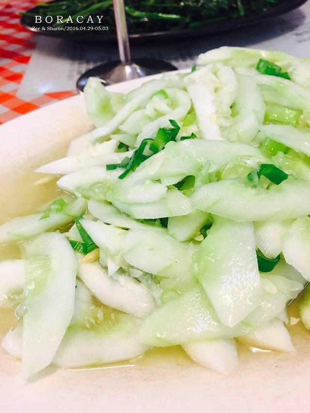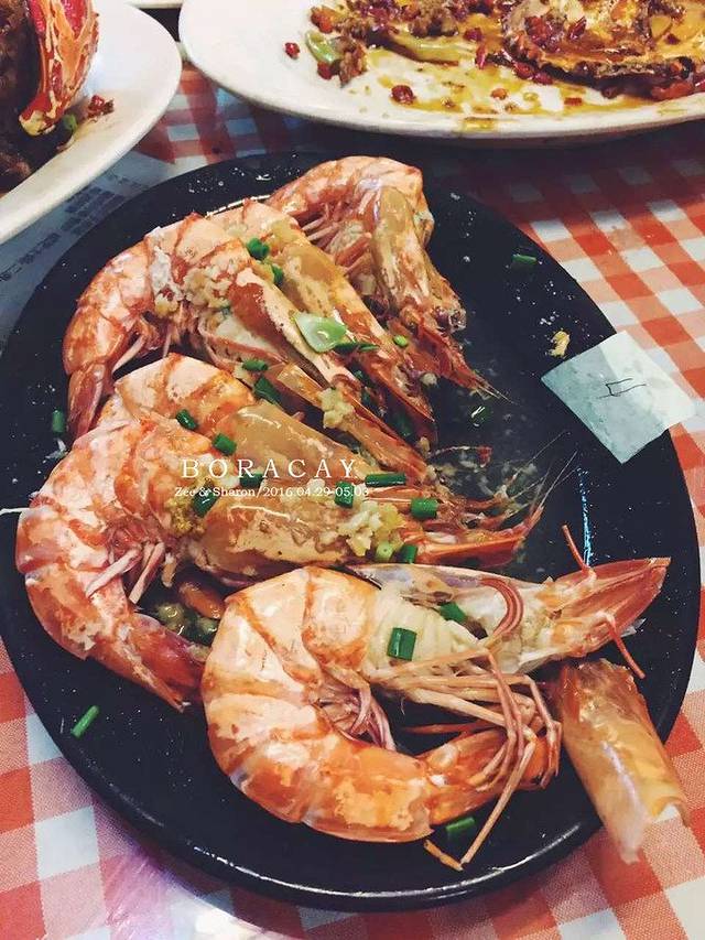 在加工店还点了每人一杯冰沙,一份空心菜,这家的空心菜不错,还有一份拌黄瓜~~真的是吃得太饱!建议大家去长滩岛一定要吃一顿海鲜,但记得吃海鲜的话就别去泡吧了,特别是女孩子,吃海鲜喝啤酒就太凉了,对身体不好!另外,建议组团去吃海鲜,这样能吃到的品种多,想想如果两个人,连个大青龙都吃不下。
