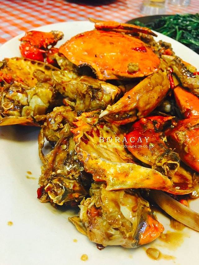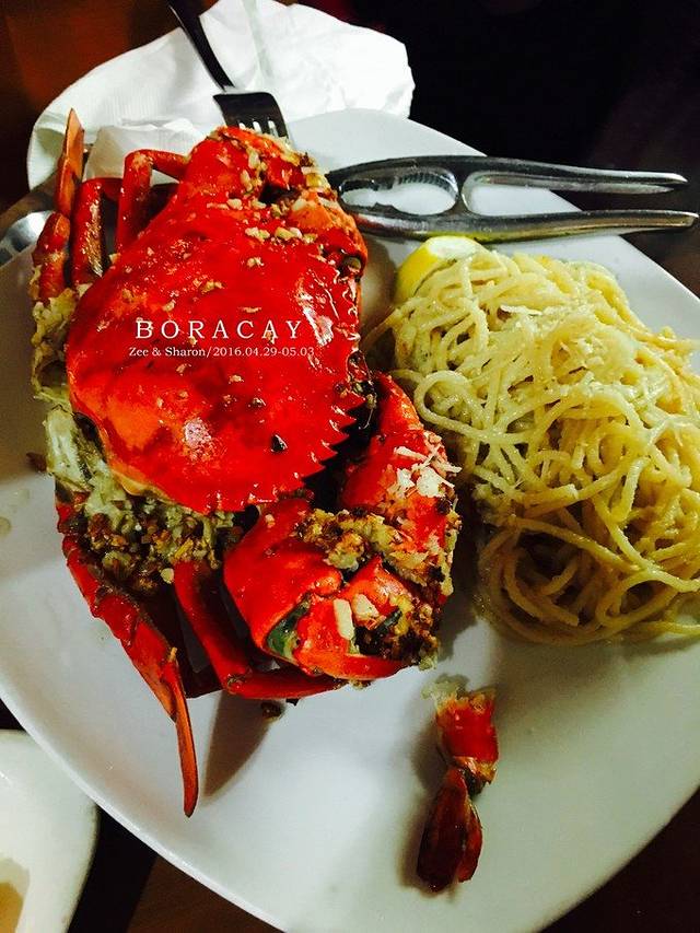 海鲜:一个青龙(大约3.5公斤,记不大清了)+三个大螃蟹+6个明虾,共11000比索,加工费(福建人在长滩岛)+其它菜品+饮料等差不多3000比索,六人吃,这一顿人均2300比索/人。