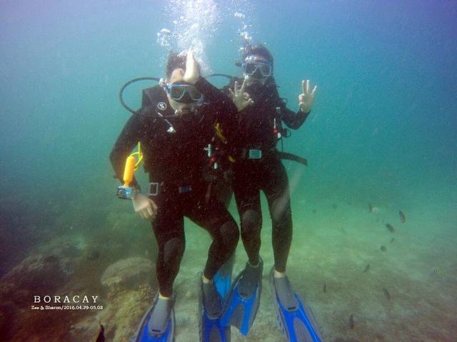 要体验潜水,提前一天去店里预约就可以了,正常价格应该都是两百多吧,我其实查到的长滩岛的体验潜水价格都差不多在250-300之间,据说有一个学校,如果你下潜不成功(因为耳压等问题),是会把你带上去再重新来一次的,实在不成功也会退一半的钱,当然这个学校的体验潜水费用就比较贵了,住同一个酒店的小伙伴就找Peter去的这家,价格是3000比索/人。