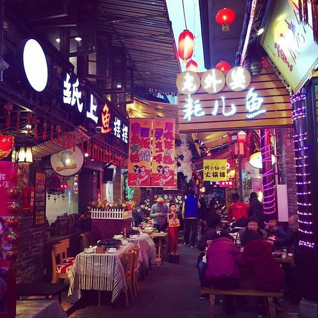 美食一条街,也是成都一个我出现频率很高的地方。很小很短的一条街,却别有风情。吃饭最爱去的是前面推荐的重庆老火锅和纸上鱼摆摆。