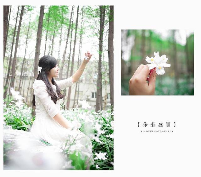 过了樱花季,三月底,川师北大门进门不远处会有一片小树林,开满了白花,也是摄影爱好者可以自由发挥的地方!
