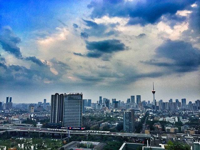 7月夏天傍晚的成都,黑云压城,大雨将至。