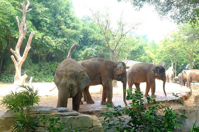 话说那天真的很热,整个园林布局还是很漂亮的。喜欢大象管,可以看到这么多大象。而且这些大象还有冷气、有水潭,好幸福啊。不像北京动物园,感觉都是土哈哈的