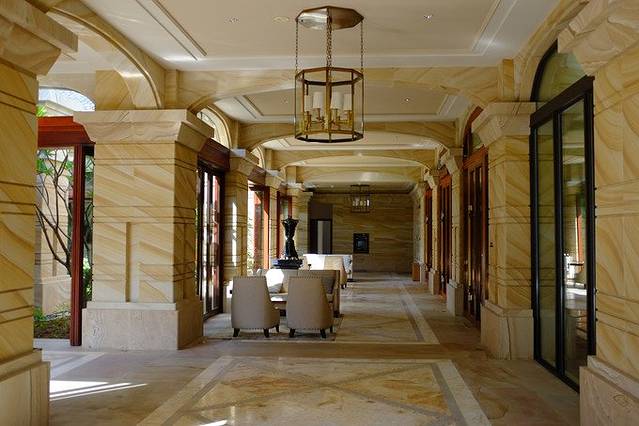 酒店的布局处处体现出奢华。欧洲式园林修建的非常好。