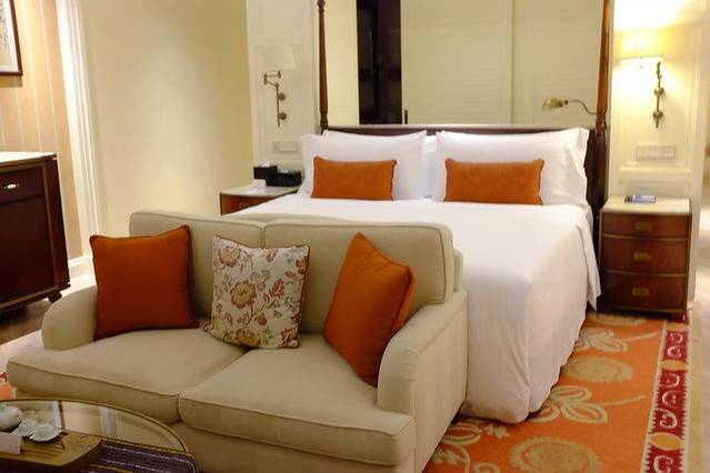 我们选择的2晚半山半岛洲际,2晚海棠湾的康莱德。选择的主要原因就是我先生是洲际的致悦皇家大使,我们预定洲际基础房就可以升级到套房,使用club,并赠送mini bar. 另外他还有希尔顿钻石卡,同样会升级到行政层,并享用行政酒廊。