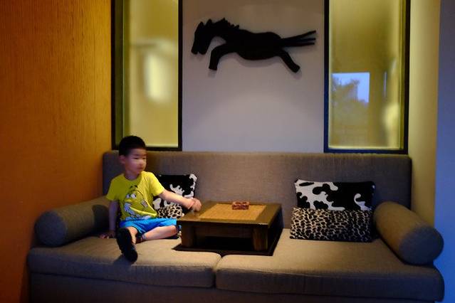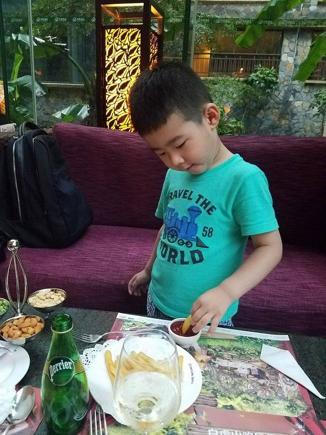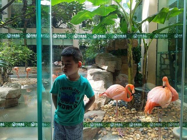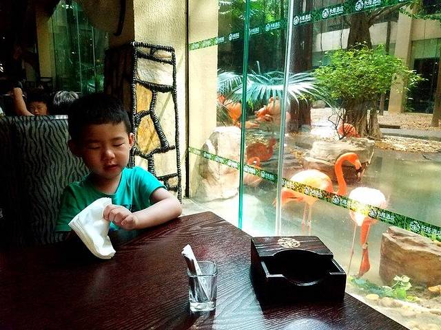 回到酒店,就在大堂吧简单的吃了午餐,大堂吧这里可以看到白虎。小朋友还是很喜欢的。