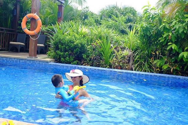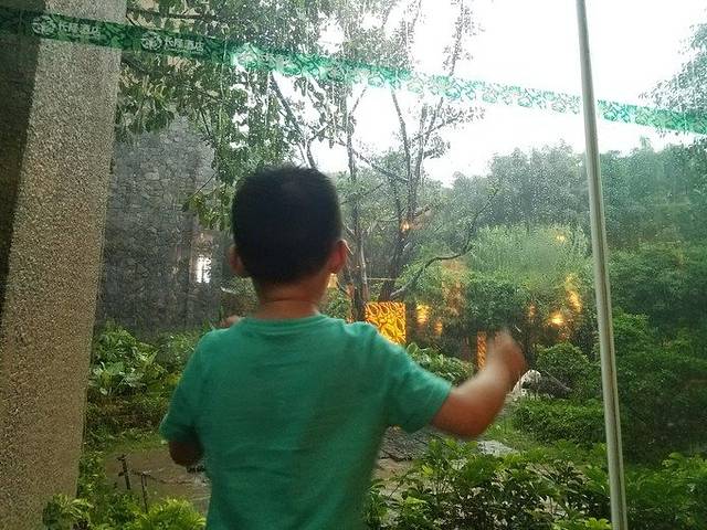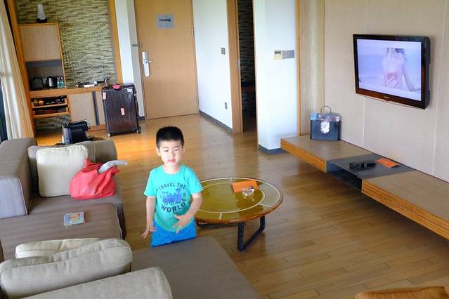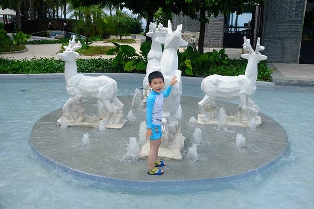 当天北京大雨,所有前往北京的航班都取消。考虑到宝宝实在太小,无法承受可能凌晨3点起飞的折磨,我们改签到第二天。正好在端午假期,最喜欢的康莱德已经满房。在机场临时查阅,携程上三亚的房间都需要提前11小时确认,只能拨打招商银行的百夫长预定电话。经过查询,海棠湾豪华精选有房。在去免税店的路上看到过这个酒店,从外型上看还是挺喜欢的,所以就决定前往。不过这家酒店真的综合评定一般。