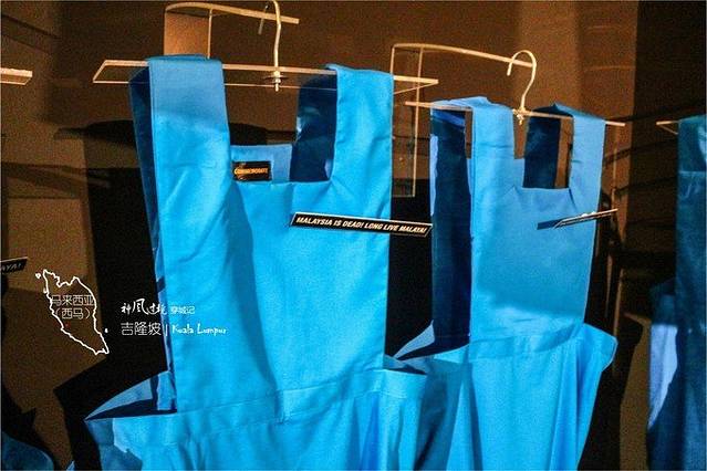 逛到一个抽象的服装展厅,每一件蓝色的衣服上面都有一个铭牌,有的写着“Malaysia is dead, long live Malaya(马来西亚已死,马来亚万岁)”,也有的写着“Malaya is dead(马来亚已死), long live Malaysia(马来西亚万岁)”。马来亚(Malaya),是马来西亚联邦西部土地(即位于马来半岛的部分)的旧称,又称西马来西亚,简称“西马”。我猜,这应该是艺术家对马来西亚建国前后西马的变化的一种复杂的情感。也许那些逝去的,都以另外一种方式成为了永恒。