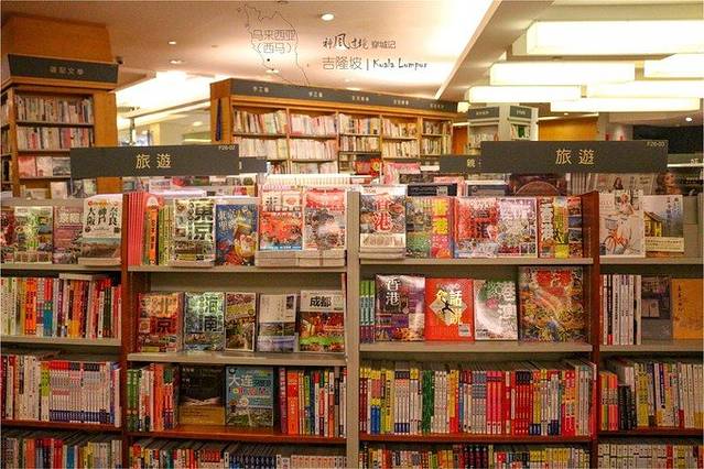书店里有好多门语种的图书,中文图书的书架数量也很多,繁体、简体的书都有。