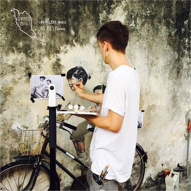2012年,旅居在马来西亚的立陶宛籍艺术家尔纳斯(Ernest Zacharevic)在槟城世界遗产区绘制了7组“魔镜系列壁画”,成为槟城的一张新名片。由于日晒雨淋需要定期补画,幸运的话可以碰到尔纳斯本人!