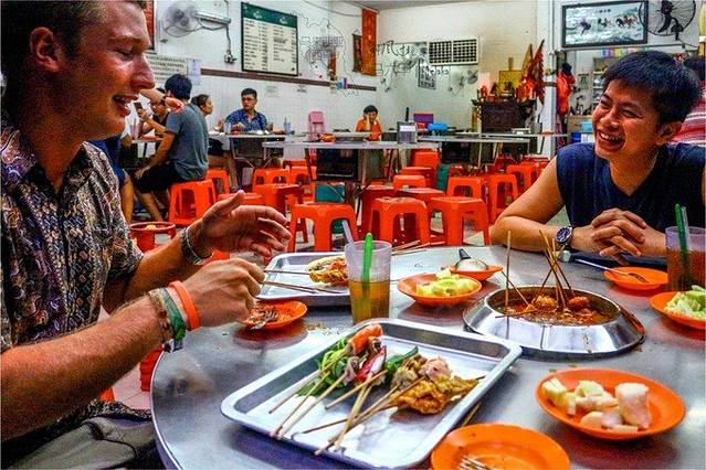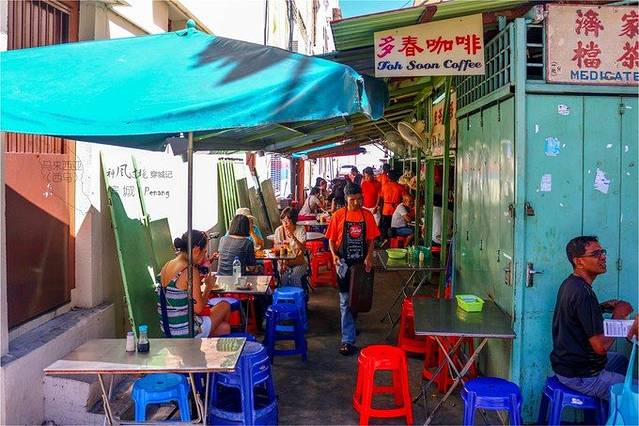 爱情巷中段路过牛干冬街(Lebuh Chulia)。路上会陆续碰到街边美食,这时你可以忍住,也可以看眼缘随性饱餐一顿再说,因为槟城美食实在是太多了,光是能上《槟城著名美食》排行版的闽粤小吃、马来小吃、印度小吃就有12种,每种小吃可能还有不同口味的几家老店,相信我你的胃口绝对不足以每道都尝上一遍!