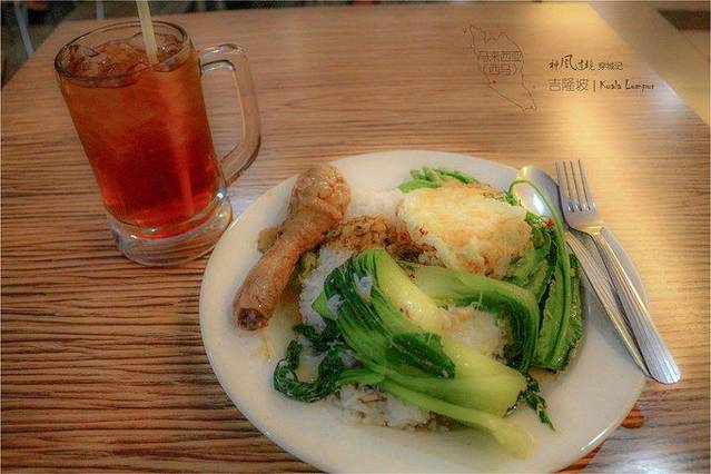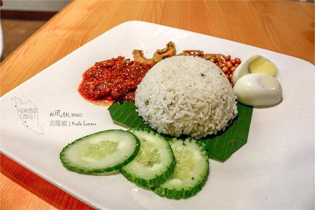 然而,我进去只点了一份椰浆饭(Nasi Lemak)——在文莱,马来西亚与新加坡很常见到的一道美食。传统上,一盘椰浆饭里有黄瓜切片、小凤尾鱼、已烤了的花生、已搅炸过的蕹菜、全熟蛋、印度式腌菜与热辣酱料(马来话称作Sambal)。
