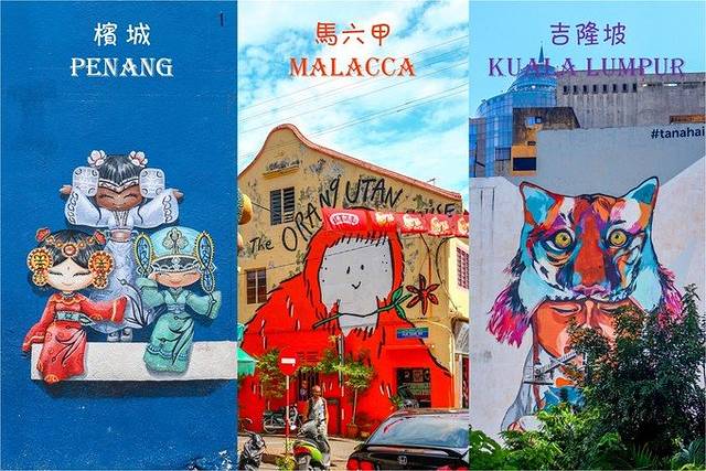 7组壁画散布在不同的街道或巷子里,分别为本头公巷(Lebuh Armenian)的《姐弟共骑》、大铳巷(Lebuh Cannon)的《爬墙小孩》、爱情巷(Love Lane)的《心碎了》、南华医院街(Lebuh Muntri)的《功夫女孩》、姓周桥的《渔船小孩》、阿贵街(LebuhAh Quee)的《追风少年》和槟榔路(Penang Road)的《歇息的三轮车夫》。