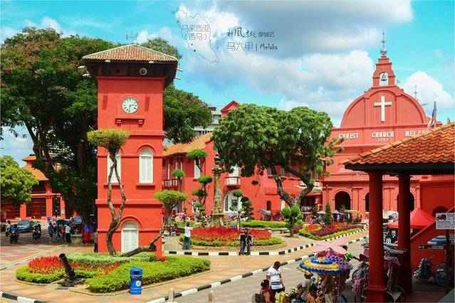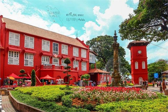荷兰广场(Dutch Square)也称红屋广场(Red Square),由十七世纪荷兰殖民时期所建的红色钟楼、二十世纪英国殖民时期所建的维多利亚女王喷泉池和几座花坛构成,它是马六甲世界遗产历史名城当之无愧的地标性建筑景观。
