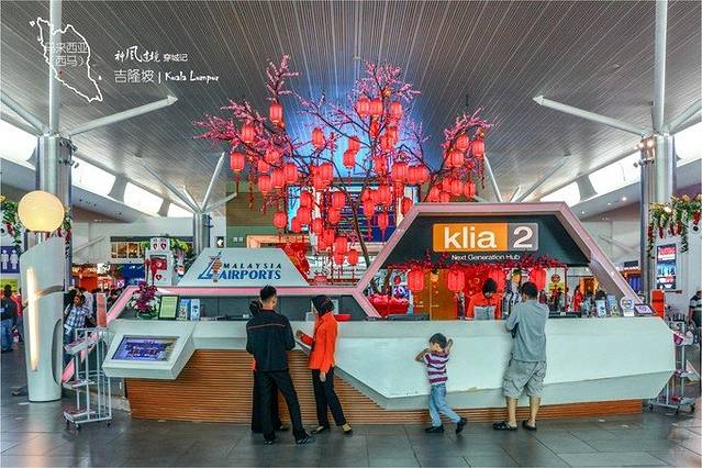 KLIA2的信息服务台,新春年味渐浓。马来西亚约有四分之一的人口是华人,农历新年被列为法定节假日。