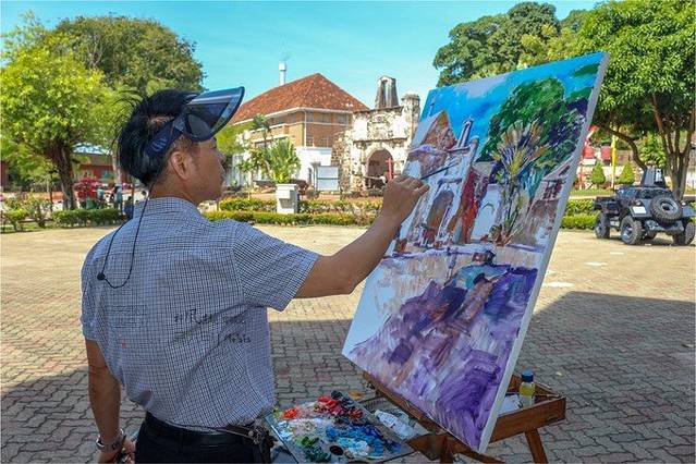 碰巧我赶上了马来西亚本土艺术家S. Amin Shahab的一公里画布故事展,他在总计长达1km的画布上用圆珠笔进行手绘,描述民间故事。
