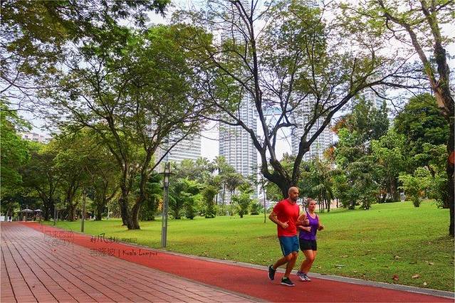 中央公园内还有宽阔的步道,时间已到傍晚,陆续有许多市民前来跑步,想必到了晚上来这儿健身锻炼的人会更多。也许也会有白领一大早来这儿晨练,跑完步冲个凉一身清爽,换上正装就到附近的写字楼上班啦,一天都会有好状态。