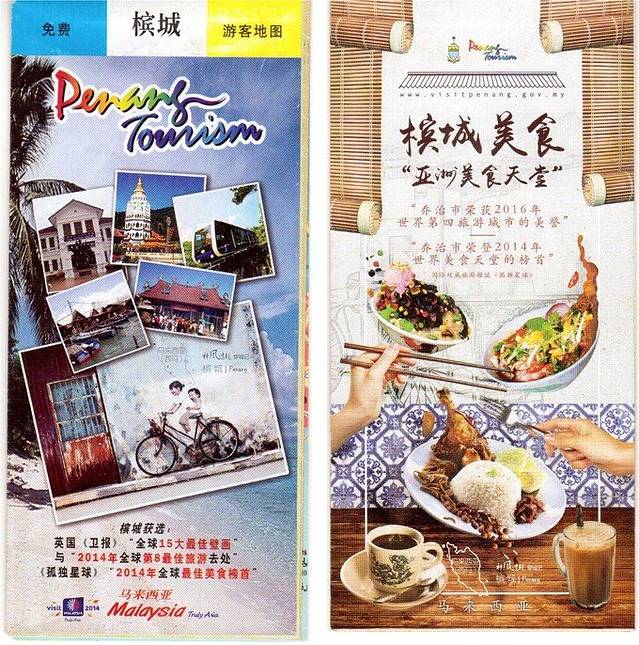 我从旅游信息咨询台那儿免费领取了一份《槟城游客地图》和一份《槟城美食地图》,因为槟城不仅是世界遗产历史名城和滨海旅游度假胜地,也是出了名的美食天堂。两份地图都是简体中文版的!