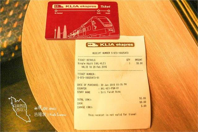 得到路线指点后跑到机场快线(KLIA Ekspres)的售票处花了55RM买了前往机场第二航站楼(KLIA2)的车票,15:35发车。抵达KLIA2时已是16:10,又是一路飞奔到亚洲航空的值机柜台,此时离飞机起飞仅有45分钟。好在我没有托运行李,获得了加急办理登机手续的优先权,才顺利登上飞机。